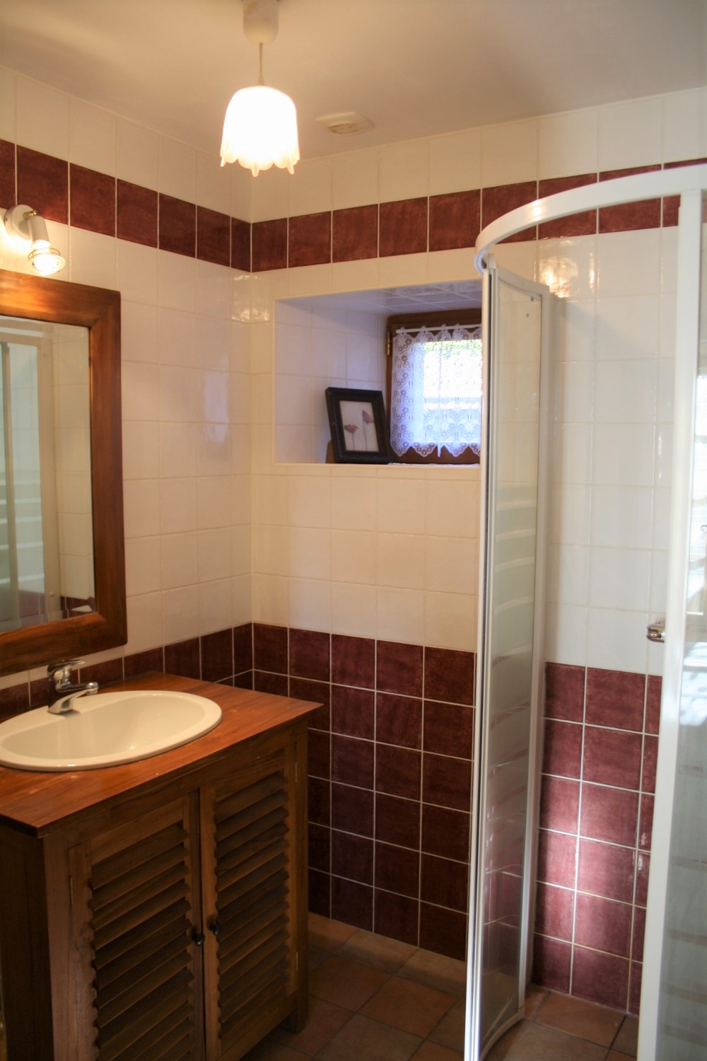Une vaste pièce de vie lumineuse avec salon et salle à manger, sublimée par une cheminée « cantou » authentique et fonctionnelle, cuisine ouverte entièrement équipée, une chambre double avec salle de douche privative, WC indépendant. - À l’étage :
