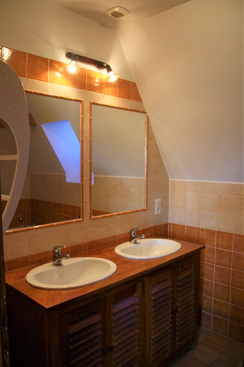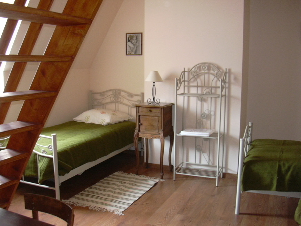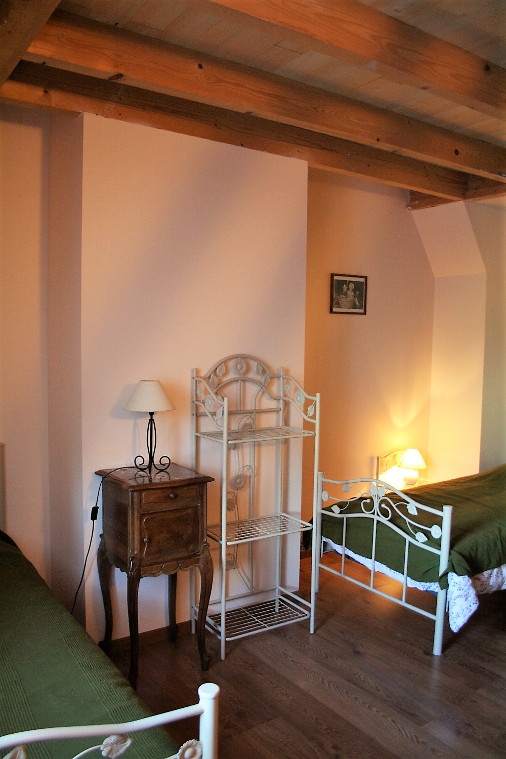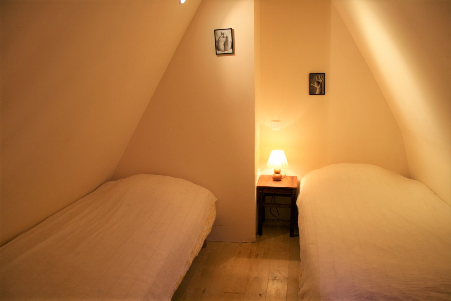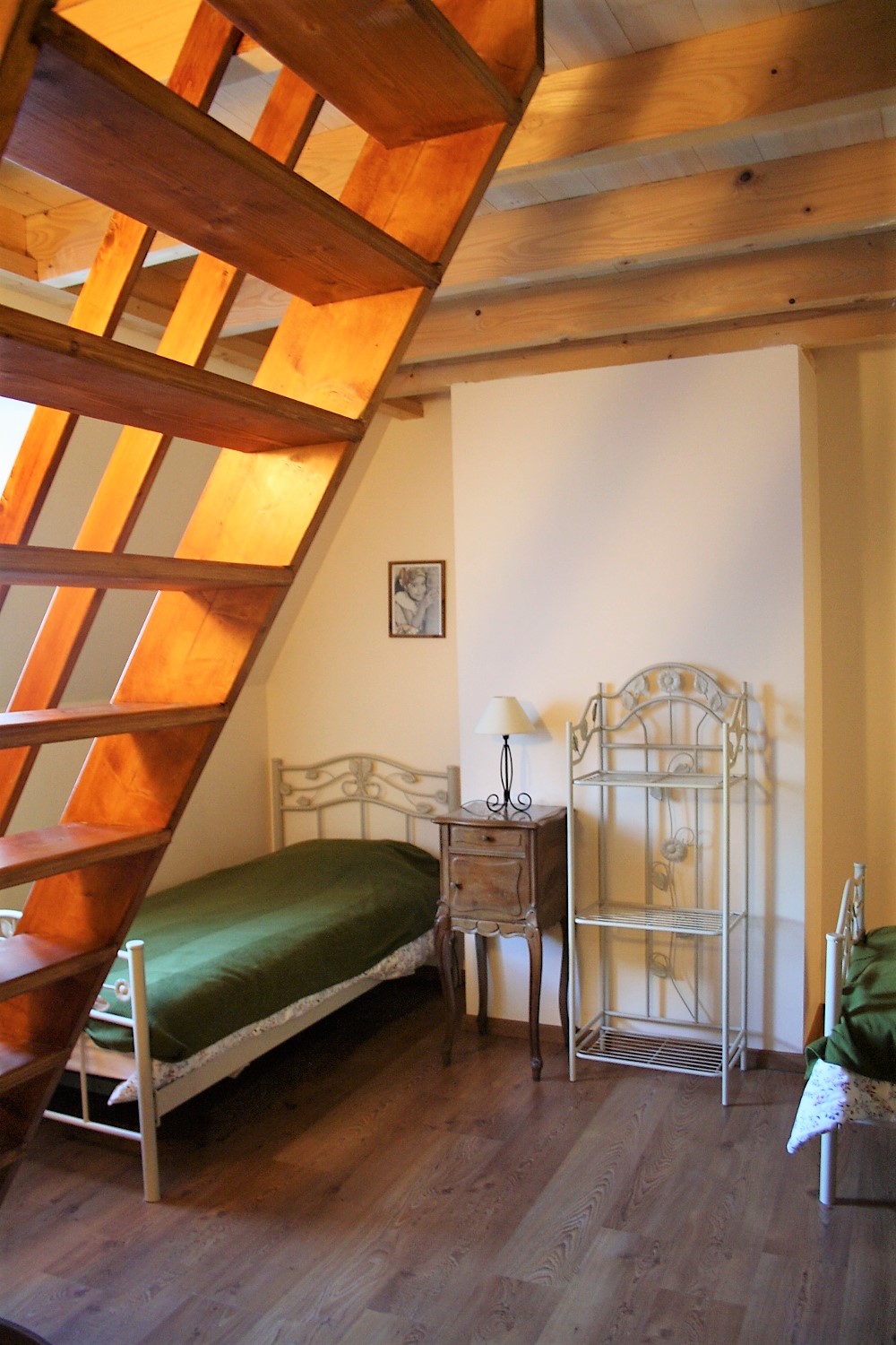 Un espace détente cosy, une salle de bain élégante, WC indépendant, une chambre double, ainsi qu’une chambre duplex idéale pour les enfants ou les groupes, combinant lits simples et lit double.