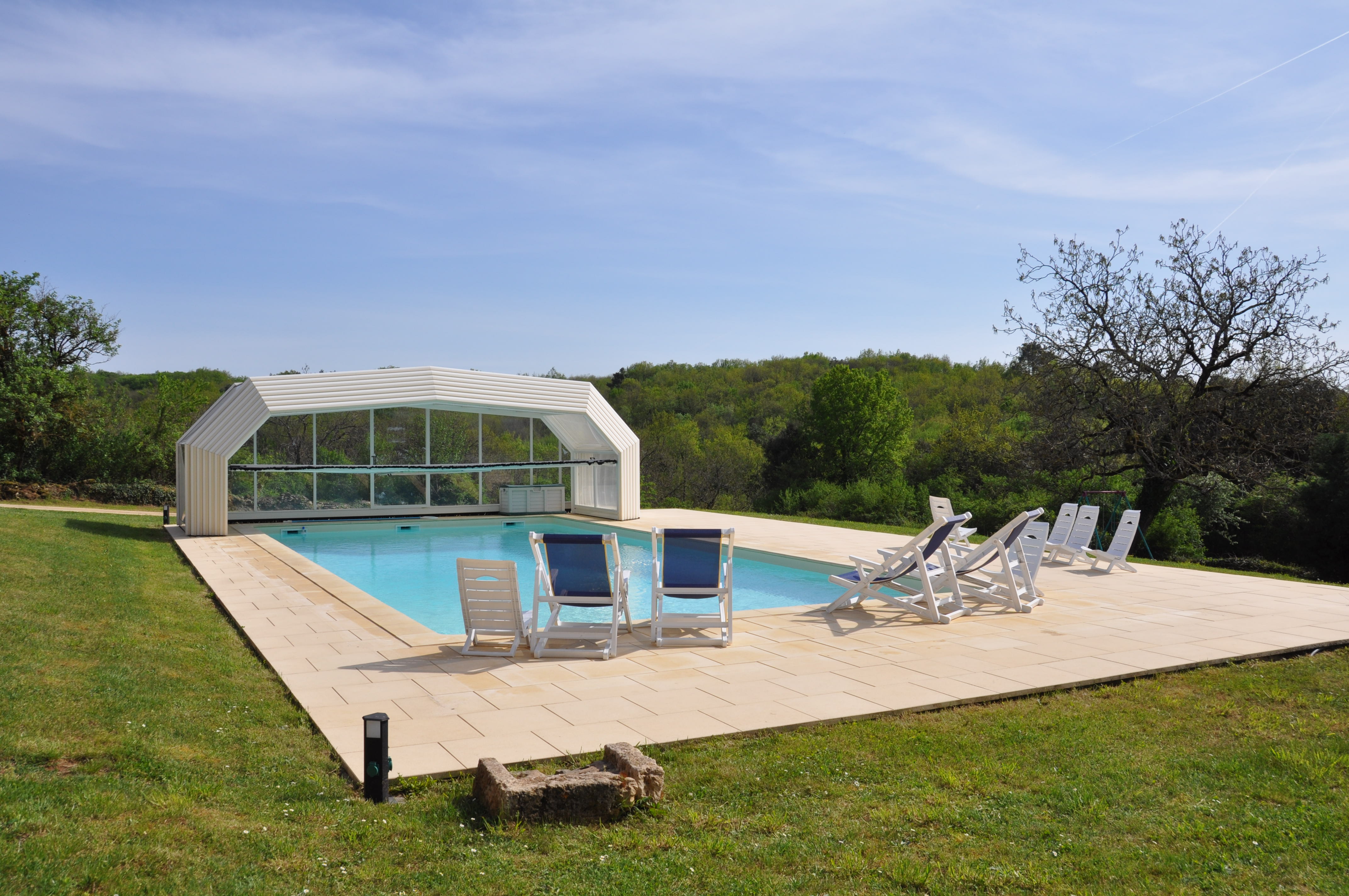 * La piscine de 5,5x12m, jouit d’un abri téléscopique permettant de conserver la chaleur en mi-saison et durant la nuit. Elle peut être entièrement découverte au plus chaud de la saison.