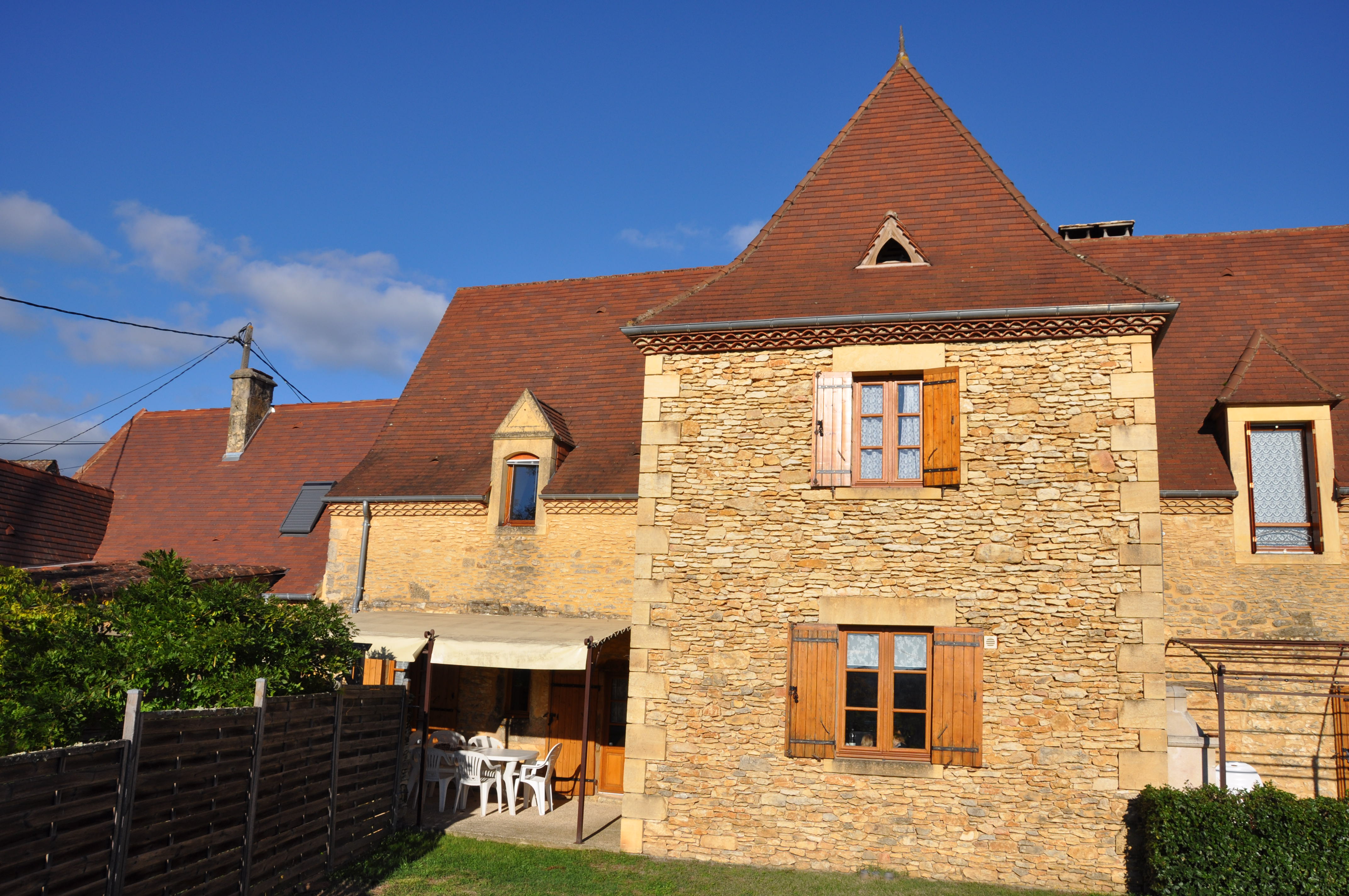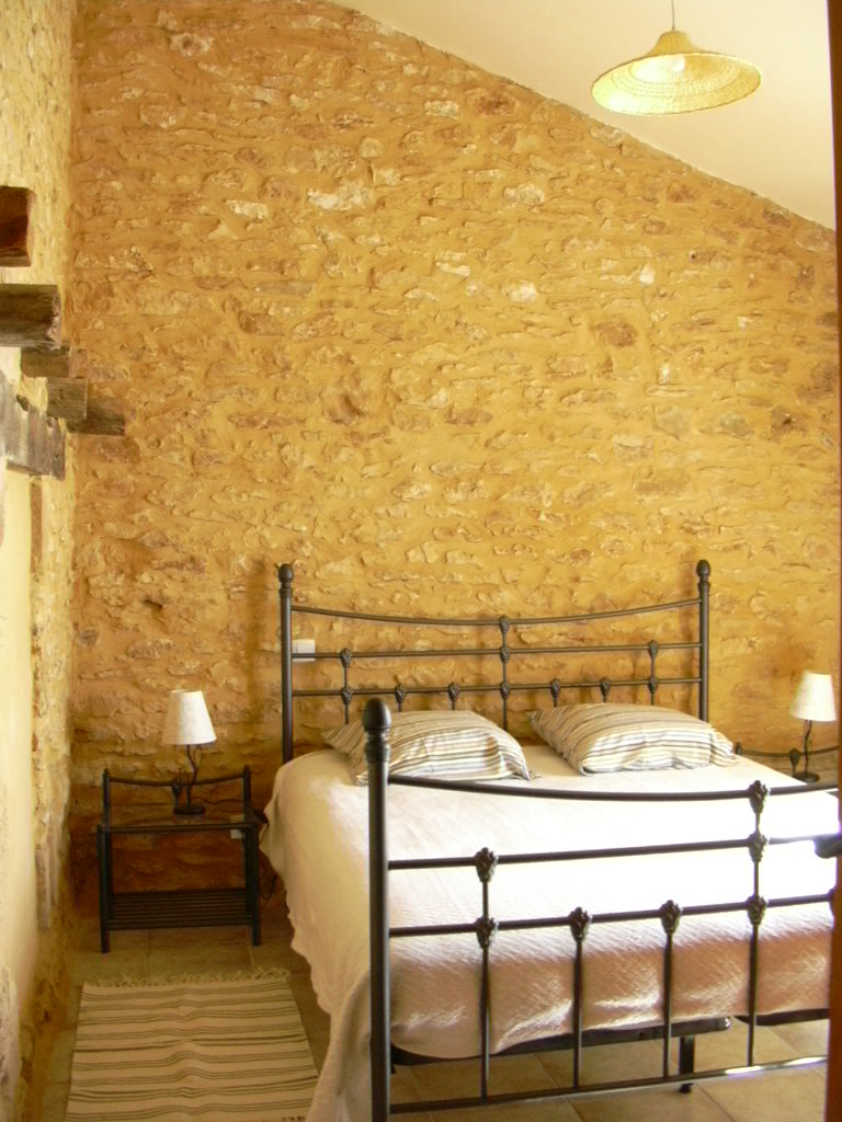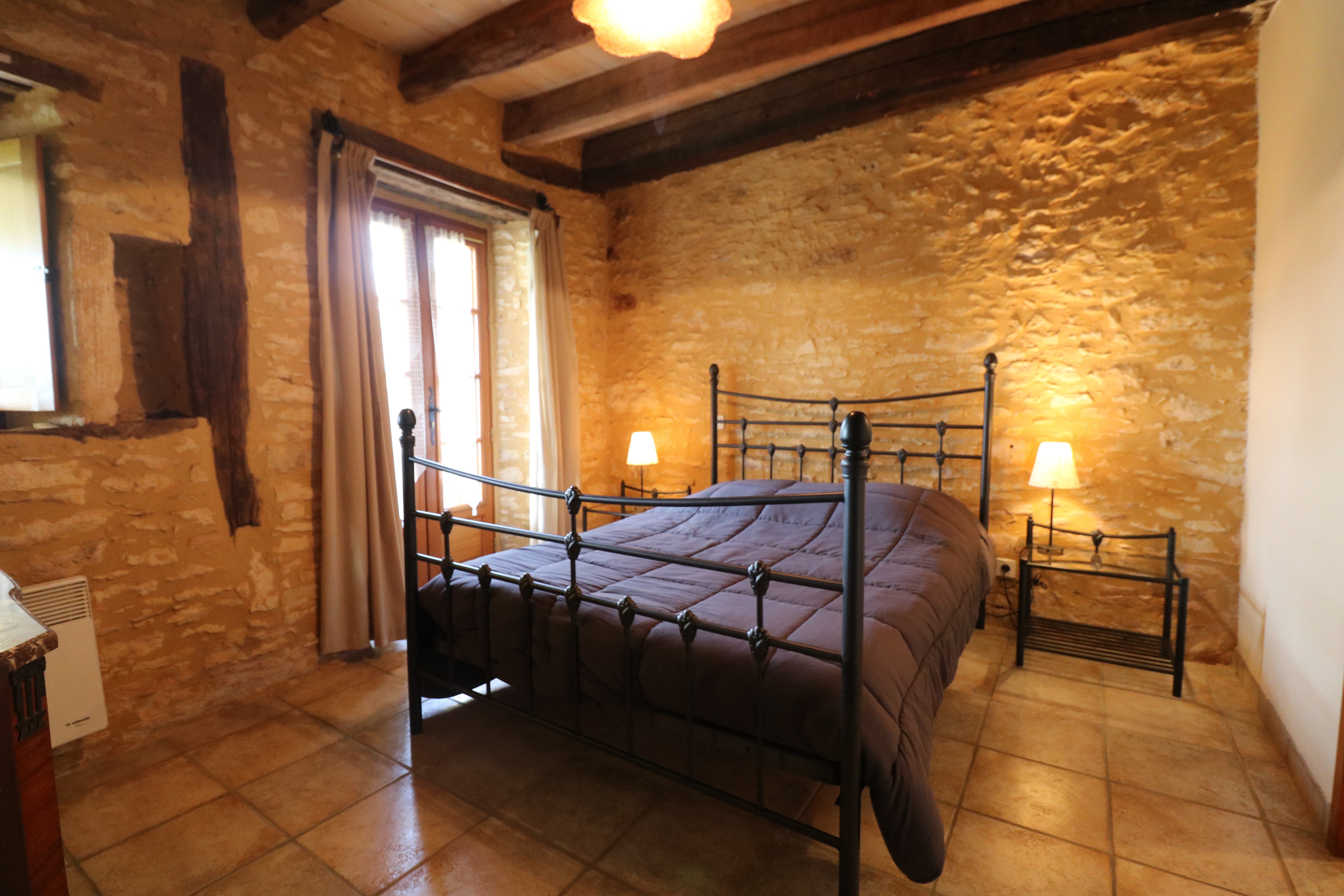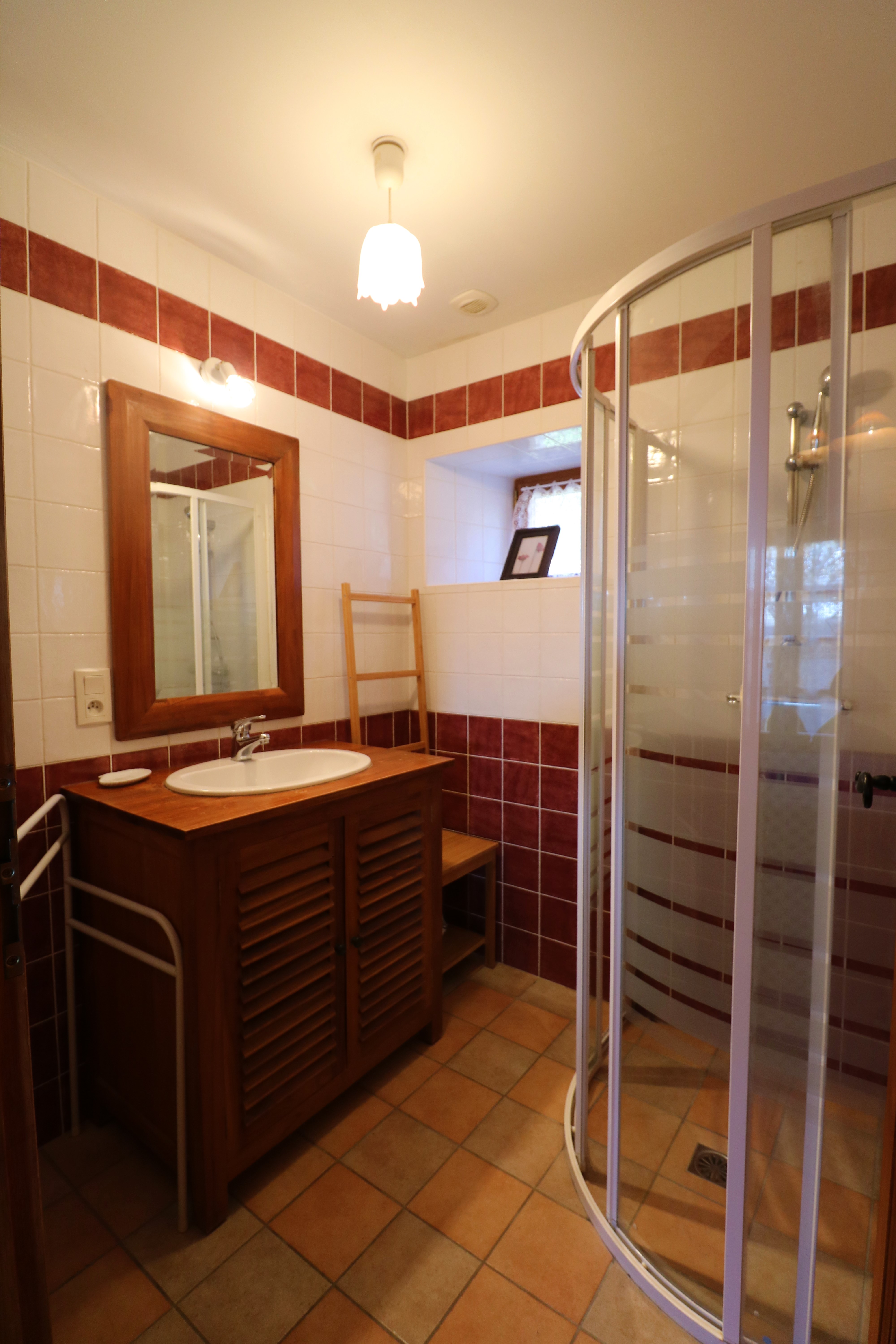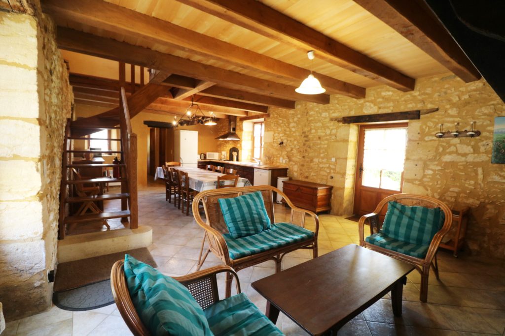 • Au RdC: d’une grande salle à manger/salon avec cheminée « Cantou » et cuisine ouverte, d’une chambre double (1 lit 160×200) avec 1 salle de douche, un WC indépendant.