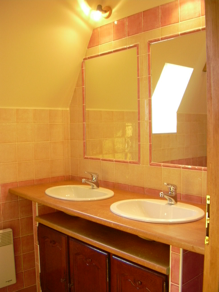• A l’étage, 1 salles de bains, 1 WC indépendants, 1 chambres double (140x190m), 1 chambres duplex avec 4 lits simples (90×190).